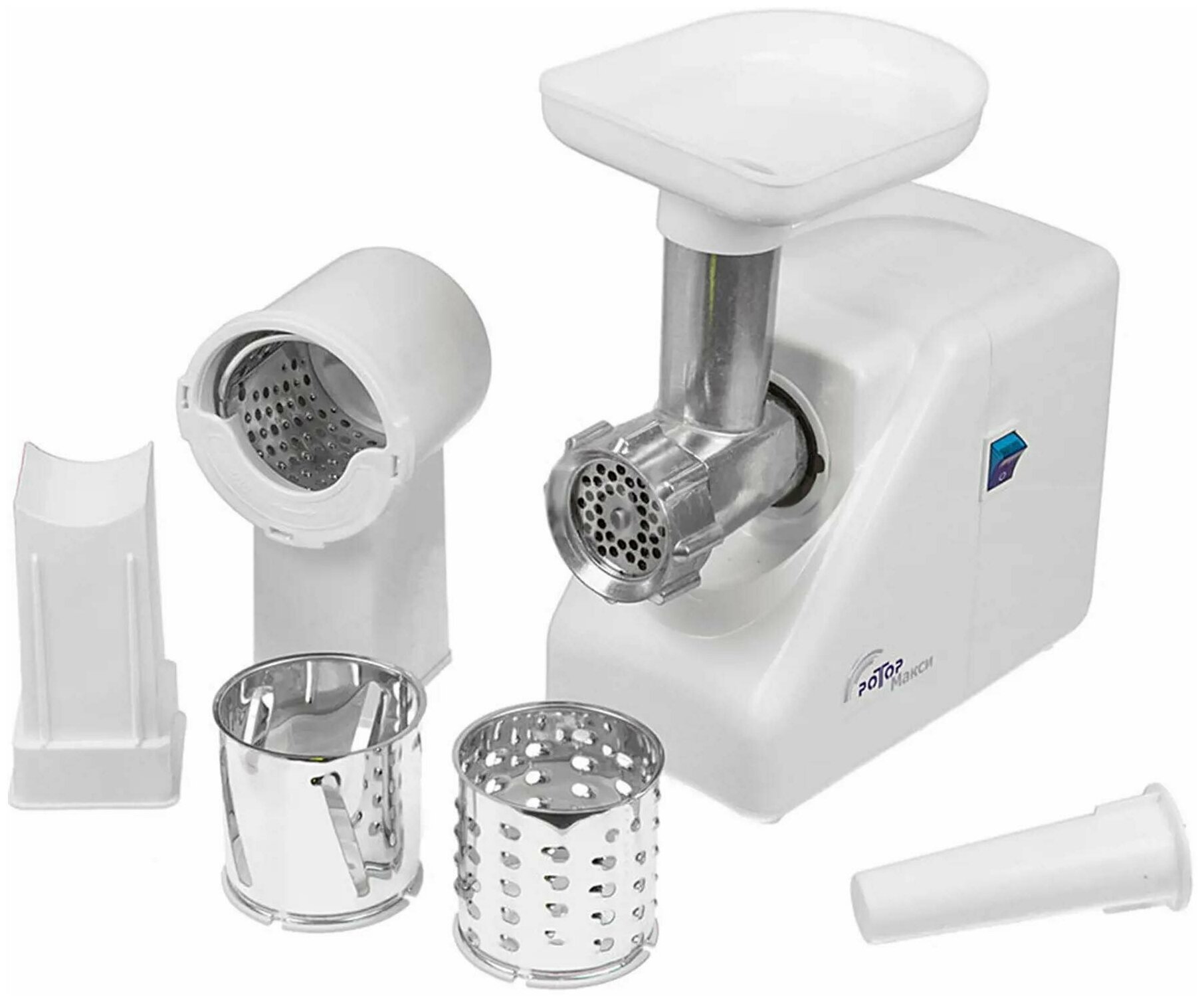 Лучшие цены. Электрическая мясорубка " Ротор-Макси" предназначена для изготовления фарша из мяса, рыбы, грибов, нарезки овощей и фруктов, профилирования песочного и пельменного теста. Также мясорубку можно использовать как соковыжималку. Тип мясорубки — шнековый, возможна комплектация разнообразными насадками (для получения сока, для резки и шинковки овощей, терка, для приготовления колбас). Данная модель отличается удлиненной трубой (для удобства использования большой миски для приема готового фарша). Магазины в вашем городе.