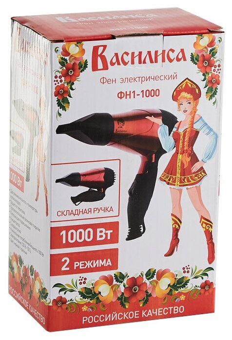 Фен Василиса, ФН1-1000, 1000 Вт, складная ручка, черно-красный