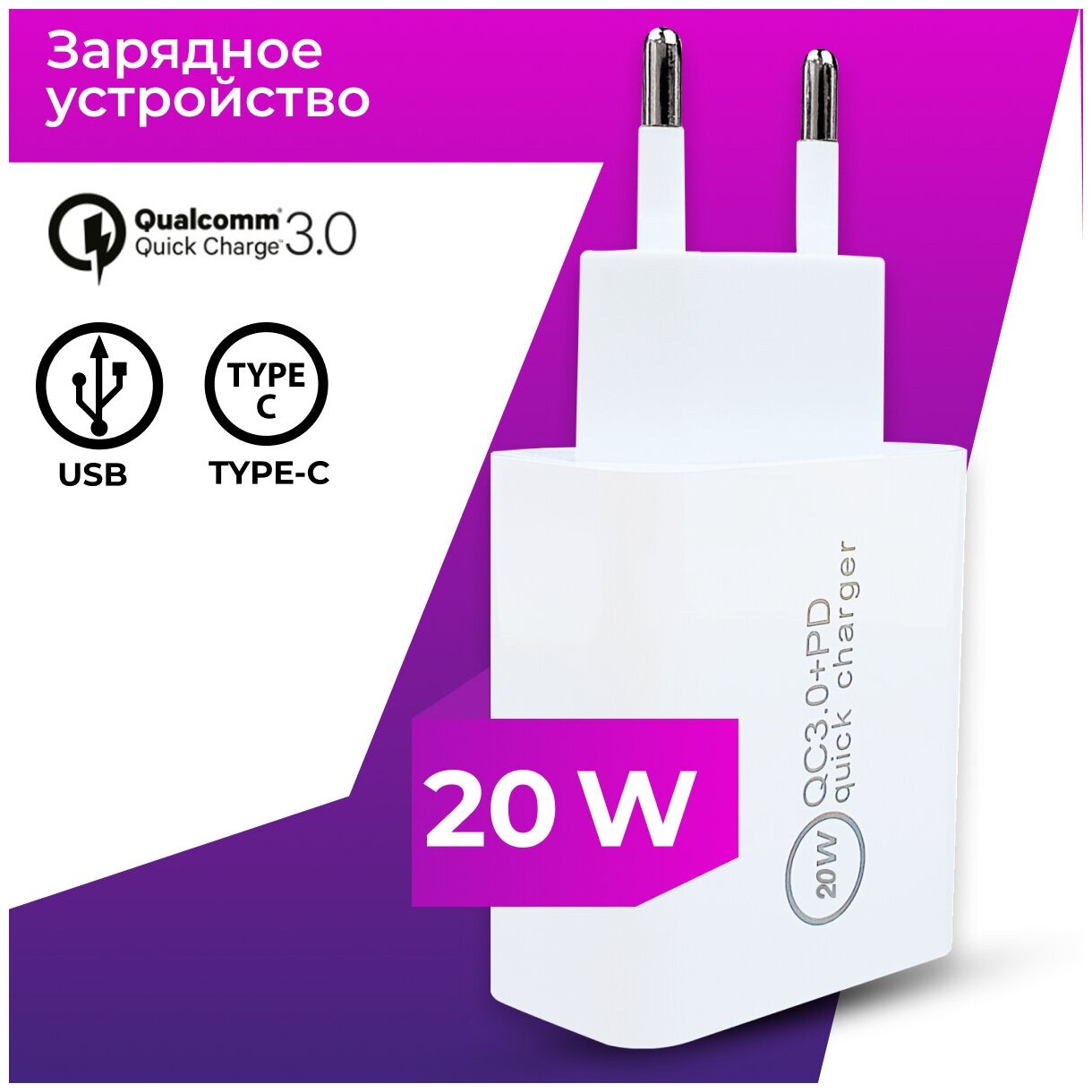 Зарядное устройство Зарядное устройство для двух устройств (ЗУ) 20W / Блок с функцией быстрой зарядки Quick Charge 3.0 / USB Type-C 20 Ватт / Power Delivery (Белый)