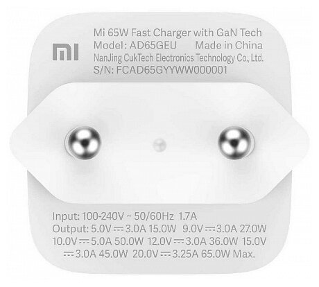 Зарядное устройство Xiaomi 65W GaN Charger (Type-A + Type-C) AD652GEU