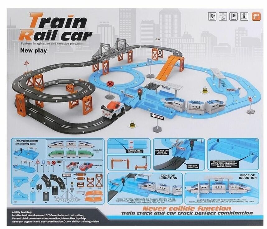 Автотрек железная дорога Большое путешествие, с машинкой и поездом, перекресток, светофор 4370174 .