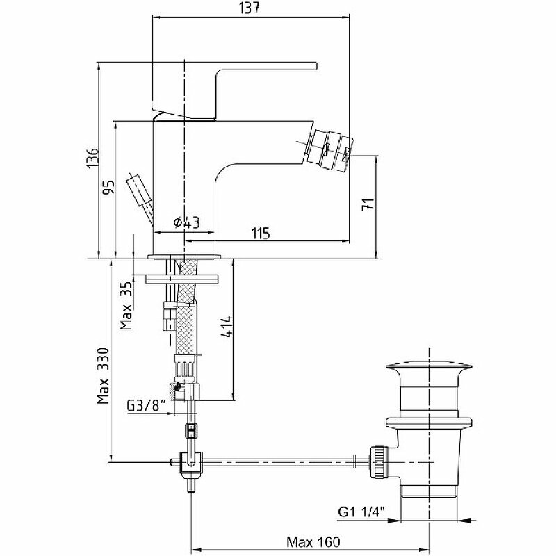 | Высота струи | 71 мм |