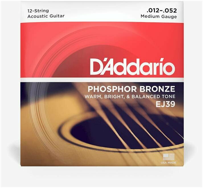 Струны D'Addario EJ39 струны для 12-струнной гитары, фосфор-бронза, Medium 12-52