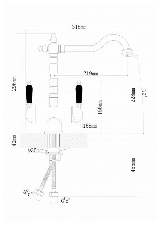 | Подвод воды | шланги / 455 мм / G 1/2" |