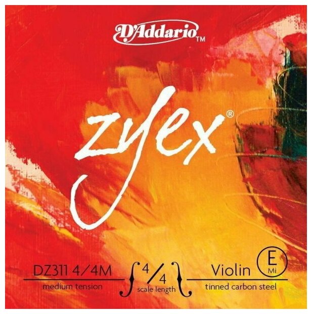 Лучшие цены. Одиночная струна для скрипки E (ми) D'Addario DZ311 4/4M Zyex D'Addario DZ311 4/4M Zyex, струна скрипичная 4/4 medium, E Одиночная струна D'Addario Zyex для скрипки с обмоткой из высокоуглеродистой стали, нота Ми (E). Струны серии Zyex с синтетическим сердечником отличаются чрезвычайно теплым и богатым звучанием. Струны Zyex изготавливаются из синтетического материала нового поколения, обеспечивающего невероятную стойкость к самым жестким климатическим условиям. Магазины в вашем городе.