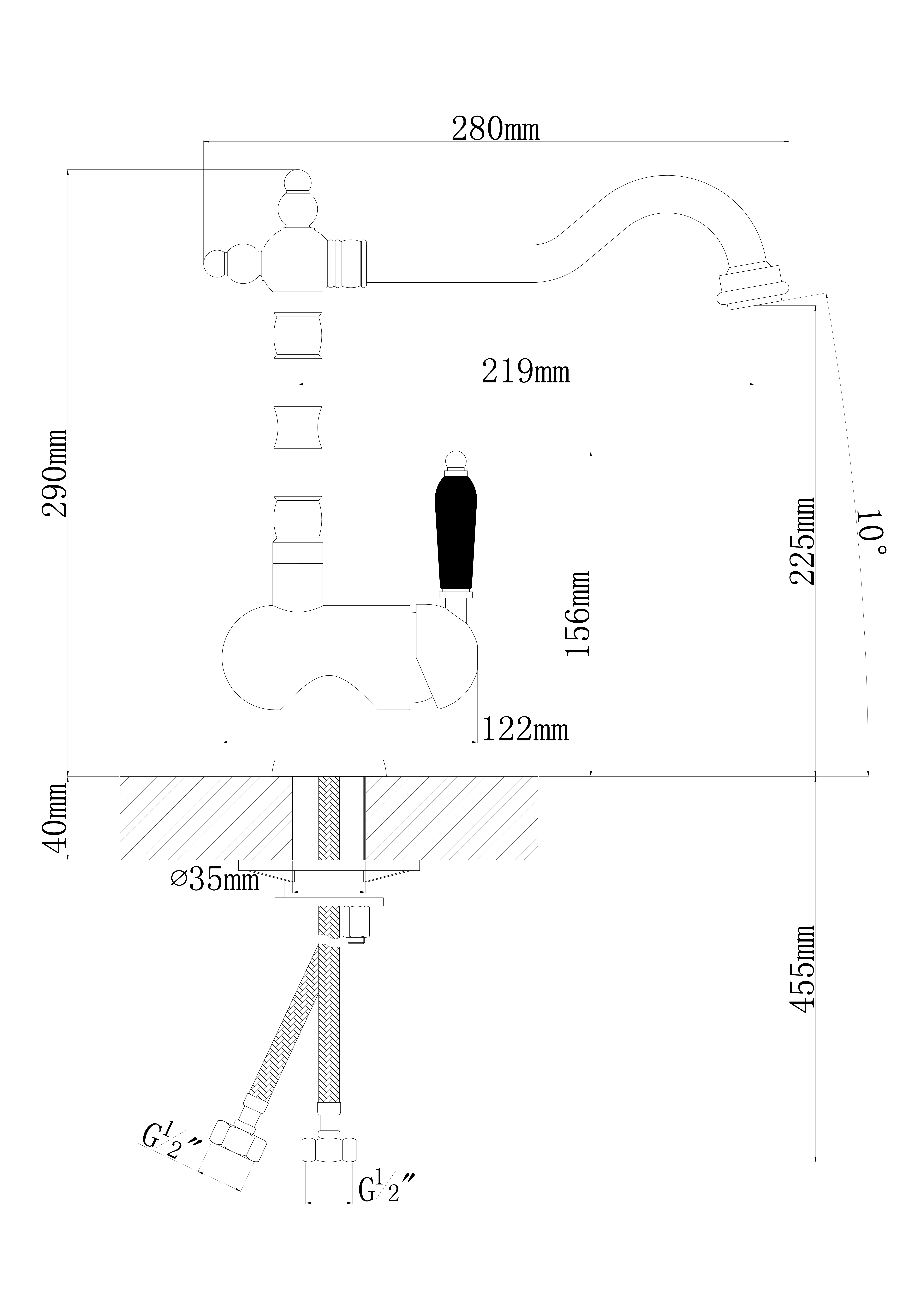 | Подвод воды | шланги / 455 мм / G 1/2" |