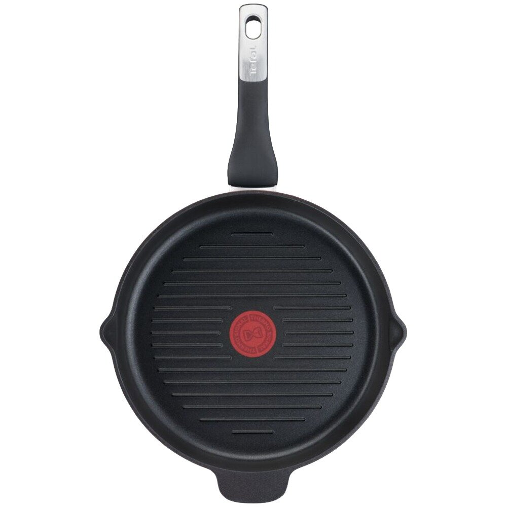 Лучшие цены. Основные характеристики - Тип: гриль - Форма: круглая - Диаметр: 26 см - Высота бортика: 4.8 см - Фактура дна: рифленое - Диаметр дна: 20.5 см - Цвет: чёрный Технические характеристики - Материал: алюминий - Покрытие: антипригарное - Название покрытия: Titanium Non Stick - Материал ручки: бакелит, нержавеющая сталь Совместимость - Для стеклокерамических плит: да - Для электрических плит: да - Для газовых плит: да - Для индукционных плит: да Особенности - Максимальная температура нагрева: 175 °C. Магазины в вашем городе.