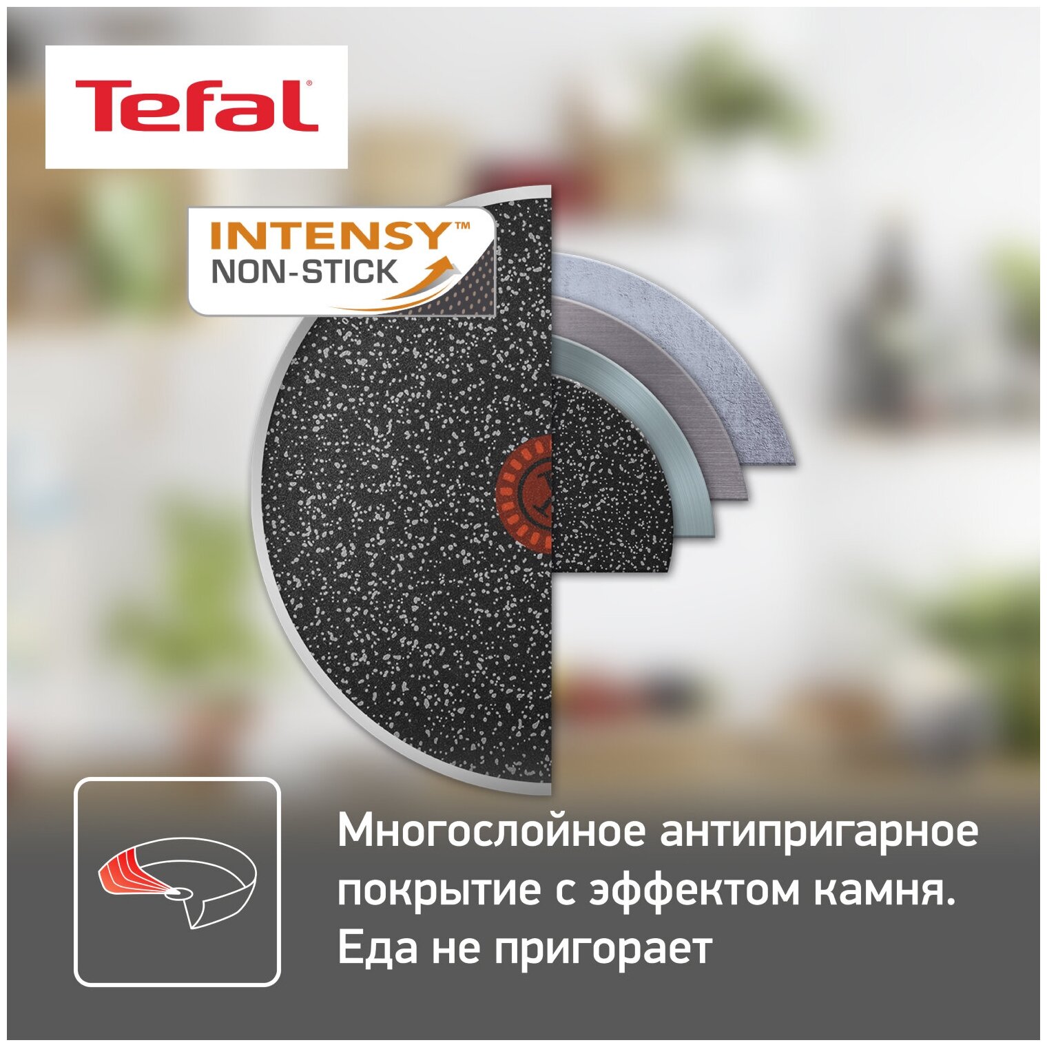 Лучшие цены. Сковорода Tefal Meteor 04208024 имеет диаметр 24 см. К ключевым особенностям можно отнести: 1) Наличие индикатора Thermo-Spot, который становится полностью красным, когда сковорода достигает идеальной температуры для начала приготовления; 2)Материал: алюминий; 3) Материал ручки: бакелит; 4) Покрытие: антипригарное Intensy; 5) Совместимо со всеми видами плит, включая индукцию; 6) Внутреннее и внешнее покрытие посуды с эффектом камня. Поставляется без крышки. Магазины в вашем городе.