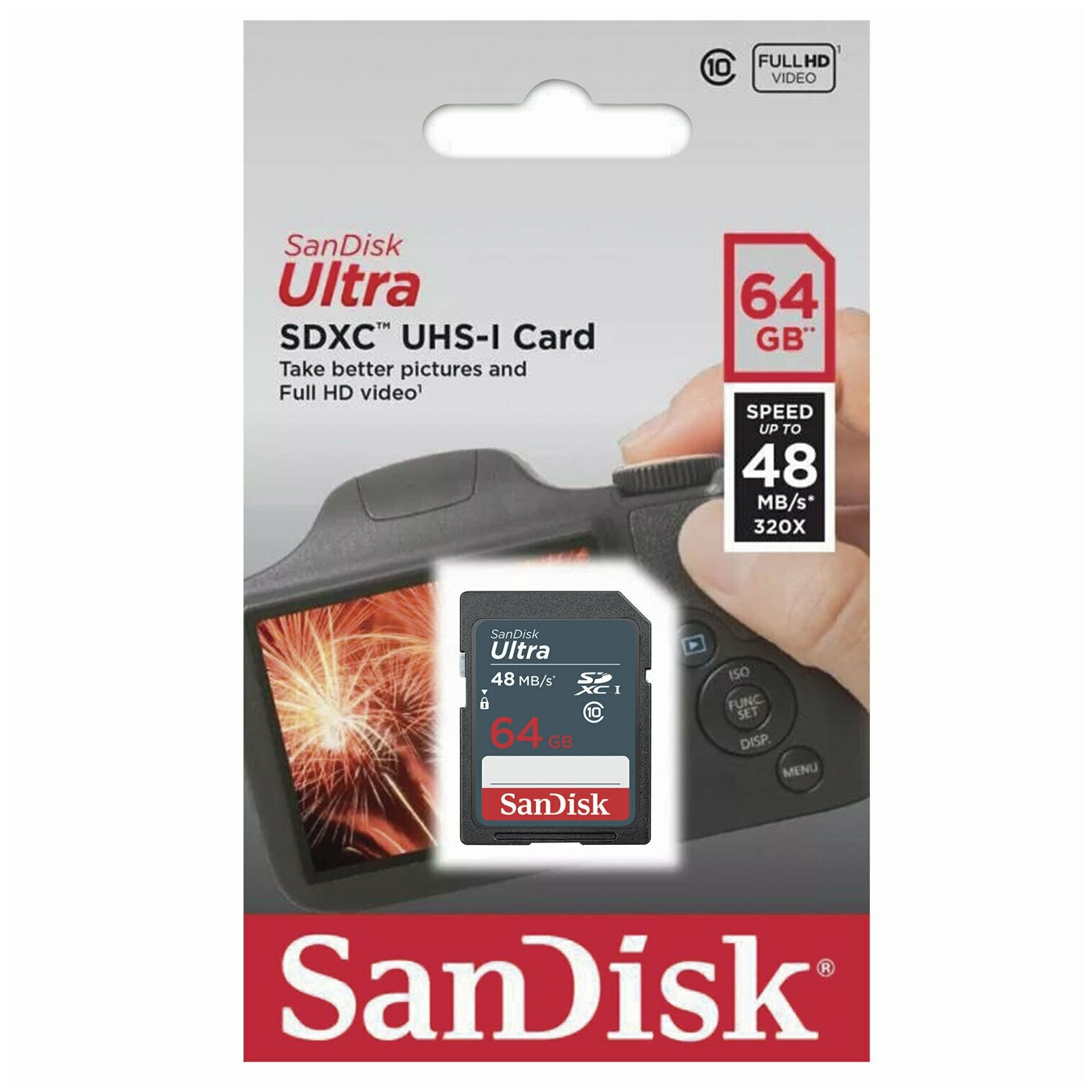 Карта памяти Sandisk Карта памяти SD 64ГБ Sandisk Ultra SDXC Class 10 UHS-I 48MB/s (SDSDUNB-064G-GN3IN)