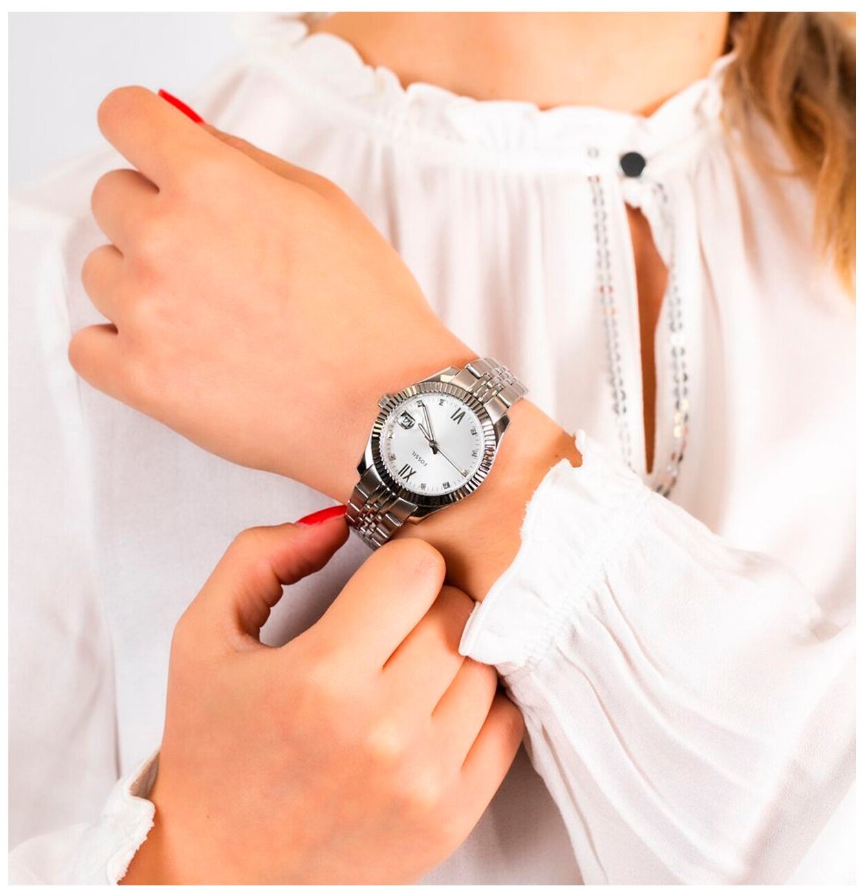 Лучшие цены. В современном мире отличным женским украшением уже давно стали наручные часы. Элегантная форма и красивый дизайн всегда подчеркнут ваш образ и привлекут внимание. FOSSIL - швейцарские часы с американским характером. Выдержанный винтажный стиль с современными элементами. Швейцарская надежность и отличная цена. -О часах ES4897- * Удобный и точный кварцевый механизм. Точность хода +20, -20 секунд в месяц. Батарейки хватает на 2-3 года. * Циферблат со стрелочными указателями. Магазины в вашем городе.