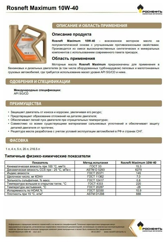 Лучшие цены. Роснефть Maximum 10W-40 – всесезонное моторное масло эксплуатационного уровня API SL/CF. Производится на полусинтетической основе с использованием современного пакета присадок, обеспечивающих высочайшие эксплуатационные свойства. Отличные вязкостнотемпературные характеристики масла обеспечивают легкий запуск двигателя при температурах до -25 о С. Магазины в вашем городе.