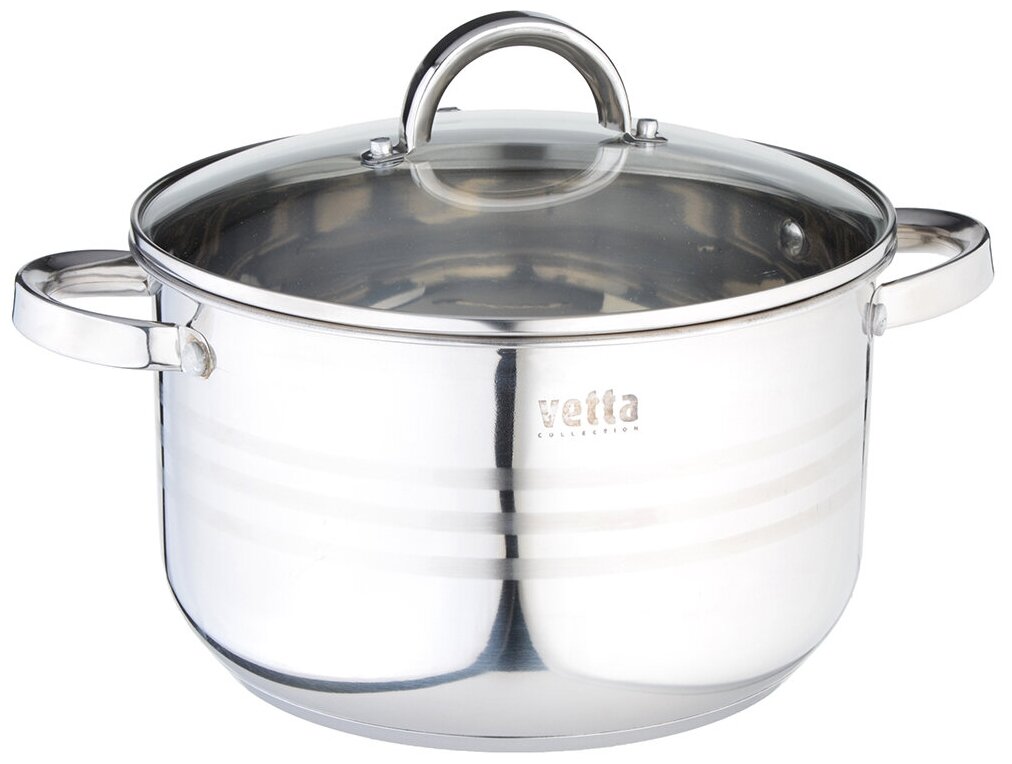 Кастрюли Кастрюля 4,0 л VETTA Фултон 822-114 из нержавеющей стали со стеклянной крышкой