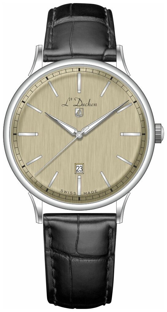 Лучшие цены. Часы наручные L'Duchen D 821.11.34. Классические мужские часы в стиле винтаж приглашают нас соприкоснуться с атмосферой прошлых лет. Надежный швейцарский кварцевый механизм обеспечивает точную работу часов. Корпус модели из высоколегированной нержавеющей стали 316L выглядит строго и респектабельно. Ушки и безель разработаны тонкими и элегантными. Немного выгнутый бежевый циферблат и полировка в виде вертикального матирования подчеркивают ретро стиль модели. Магазины в вашем городе.