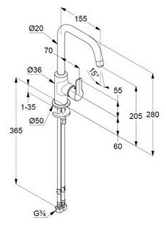 | Высота смесителя | 280 мм |
