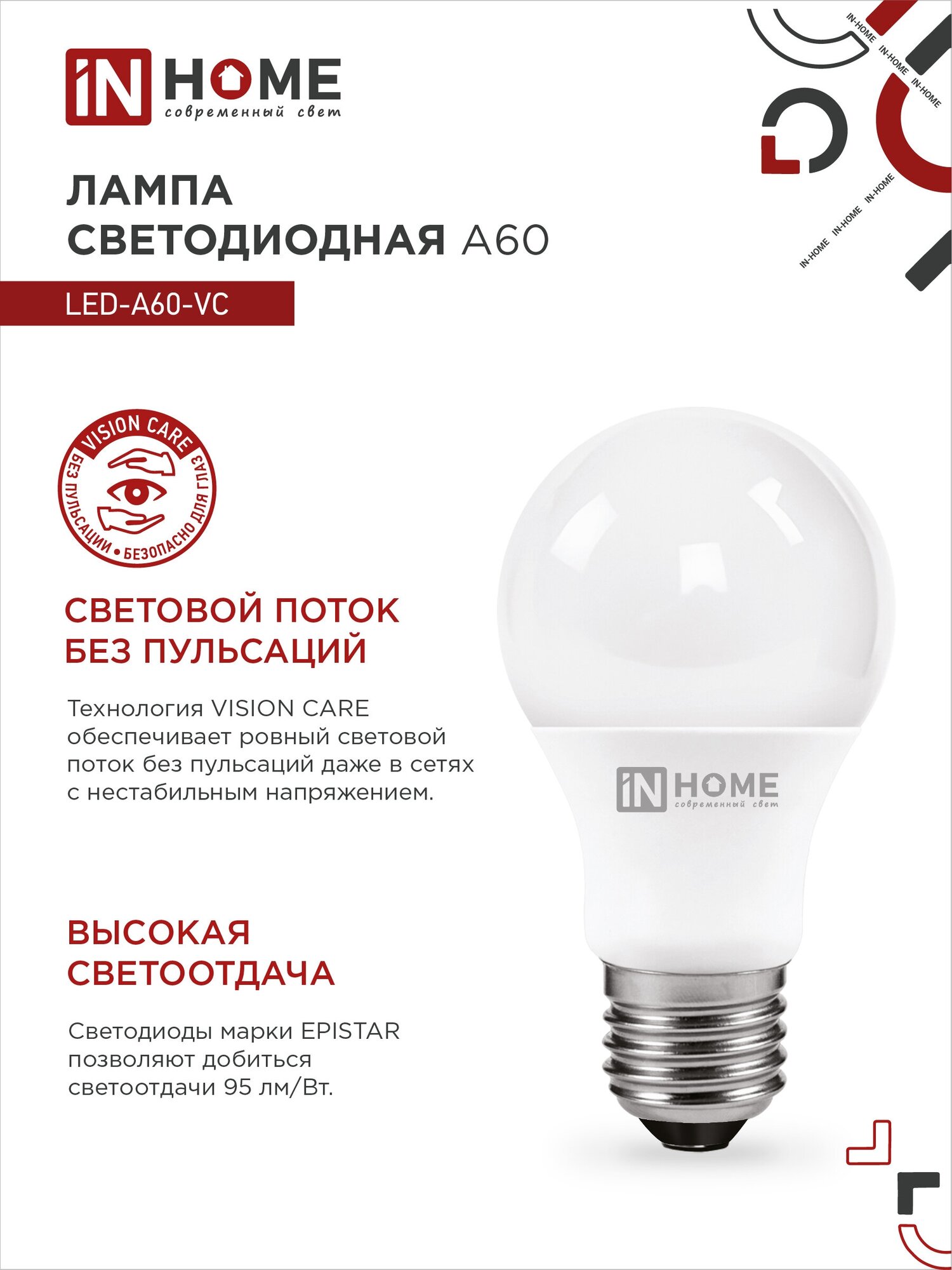 Лампа светодиодная IN HOME LED-A60-VC (4690612020211), E27, A60, 10 Вт, 4000 К