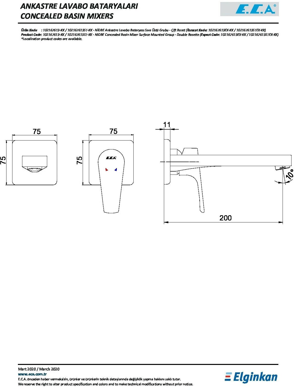 Смеситель для раковины E.C.A NIOBE 102167613EX-KK (внешняя часть)