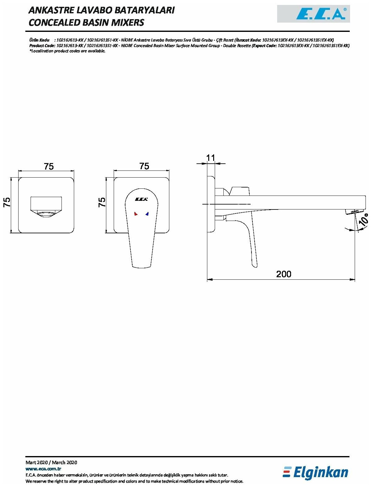 Смеситель для раковины E.C.A NIOBE 102167613EX-KK (внешняя часть)