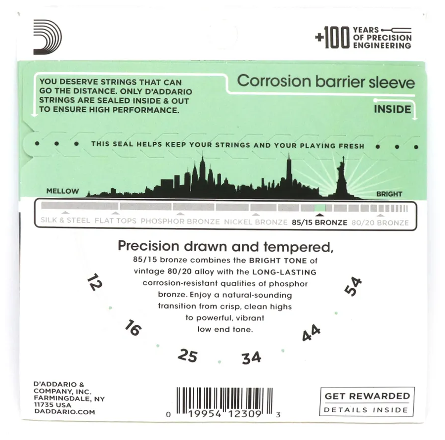 Струны EZ920 AMERICAN BRONZE 85/15 Струны для акустической гитары Medium Light 12-54 D`Addario