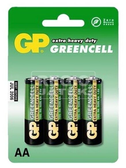 GP Батарейки "Greencell", АА пальчиковые, Солевые,4шт, на блистере, 1 уп
