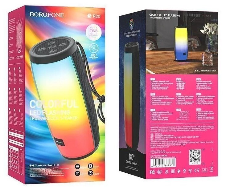 Портативные колонки Borofone / Колонка Bluetooth LED BT/microSD/USB/AUX 2400mAh черная BR20 Sound Wave
