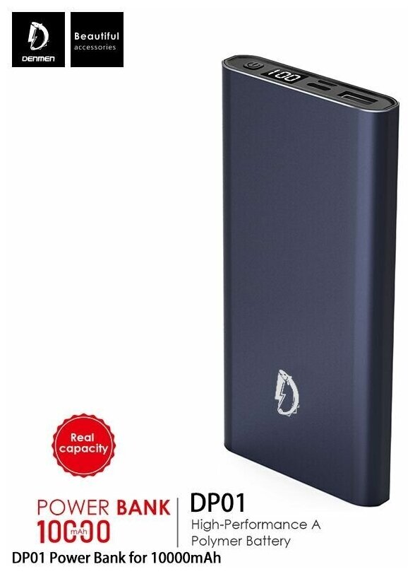 Лучшие цены. Внешний аккумулятор Powerbank DENMEN DP01 10000 голубой. Емкость батареи: 10000 мАч Вход: 5V-1.5A (Micro USB), 5V-2.1A (TYPE C) Выход: DC5V-2.1A. Магазины в вашем городе.