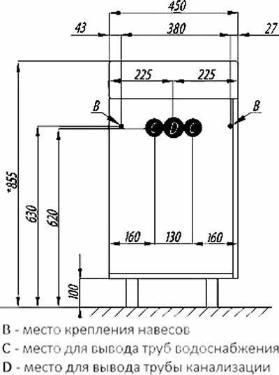 | Расположение раковины | по центру |
