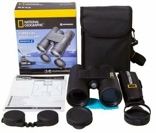 Лучшие цены. Полностью водозащищенный бинокль – это прекрасный выбор для охотника и рыболова. Bresser National Geographic 8x42 WP не боится случайных брызг, дождя и снега. Его можно ронять в воду, и это не приведет к повреждениям оптической схемы. Бинокль обеспечивает 8-кратное увеличение и имеет светосильные объективы, способные проявить себя даже при астрономических наблюдениях. Светосильная оптика – самая сильная сторона этого бинокля. Магазины в вашем городе.