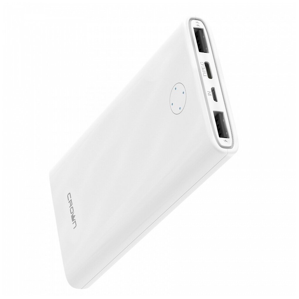 Powerbank аккумулятор Внешний аккумулятор Crown CMPB-1000, 10000 мАч, 2 USB, 2.1 А, белый