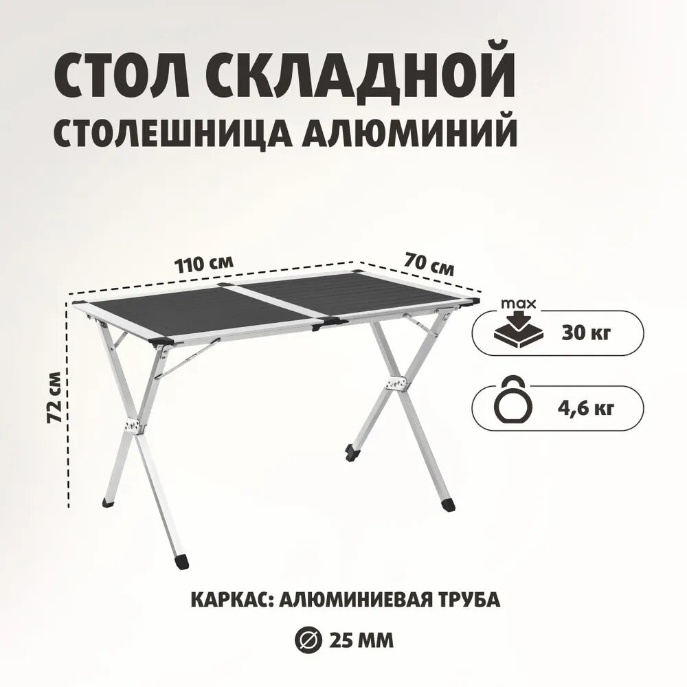Туристическая мебель Стол складной Helios 110х72.5х70 см., столешница алюминий
