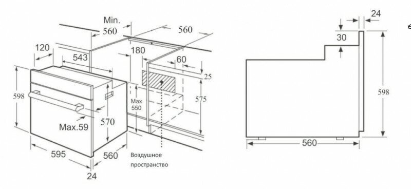 | Размеры для встраивания (ВхШхГ) | 600x560x550 мм |