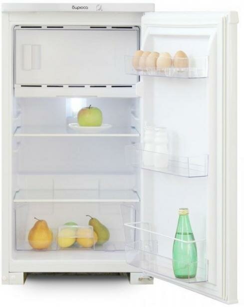 Лучшие цены. Тип: Холодильник; Цвет корпуса: белый; Объем холодильной камеры: 88; Объем морозильной камеры: 27; Количество дверей: 1; Изменение стороны открывания дверей: да; Материал полок: пластик/стекло; Количество полок: 2; Количество ящиков/отсеков морозильной камеры: 1; Количество камер: 1; Управление: механическое; Класс энергопотребления: А+; Климатический класс: N, ST; Хладагент: R600A; Уровень шума: 40; Расположение морозильной камеры: вверху; Прочие особенности и свойства: Однокомпрессорный холодильник Бирюса. Магазины в вашем городе.