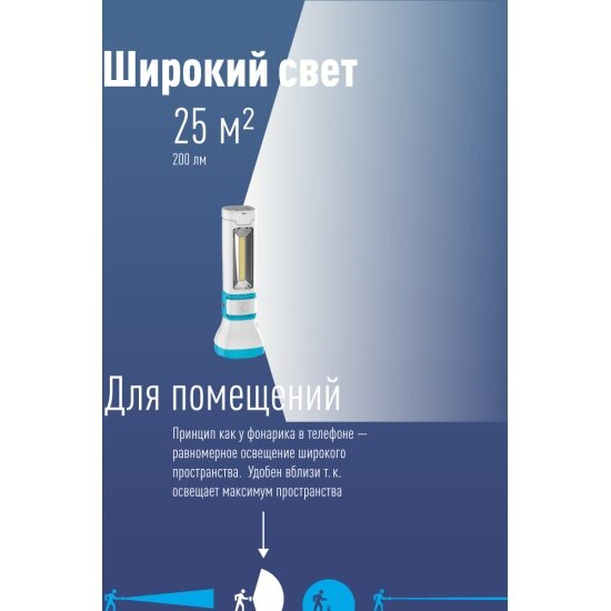 Космос фонарь ручной 7023WLED (акк.4V1,2Ah) LED3W (180lm)+COB2W, голубой/пласт., 3 реж. (арт. 646378)