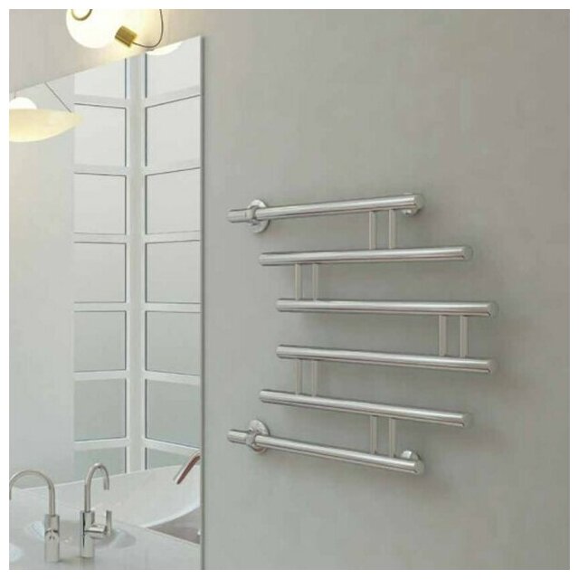 Лучшие цены. Водяной полотенцесушитель Ника Econ ПМ4 60x70 см, цвет хром. Используется для удобной просушки влажных вещей и полотенец, а также дополнительного обогрева помещения. Изготовлен из пищевой нержавеющей стали марки AISI 304 (Италия) с антикоррозийным покрытием, отличается стойкостью к высоким температурам, выдерживает значительные перепады давления. - Форма: лесенка. - Количество перекладин: 6. - Высота: 63 см. - Ширина: 82 см. - Толщина стали: 2 мм. - Теплоотдача: 338 QВт. - Межосевое расстояние: 60 см. Магазины в вашем городе.