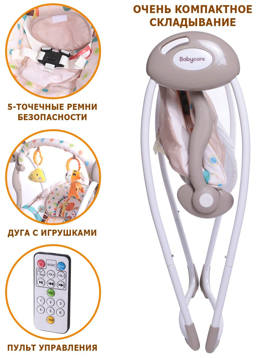 Электрокачели Babycare, SAFARI от 0 с пультом управления и адаптером, лимпопо