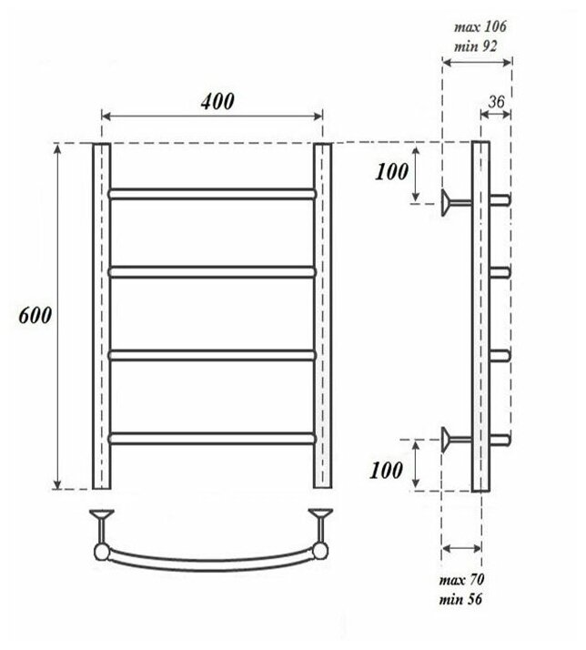 Полотенцесушитель электрический Point Pn04146e П4 400x600 левый/правый хром .
