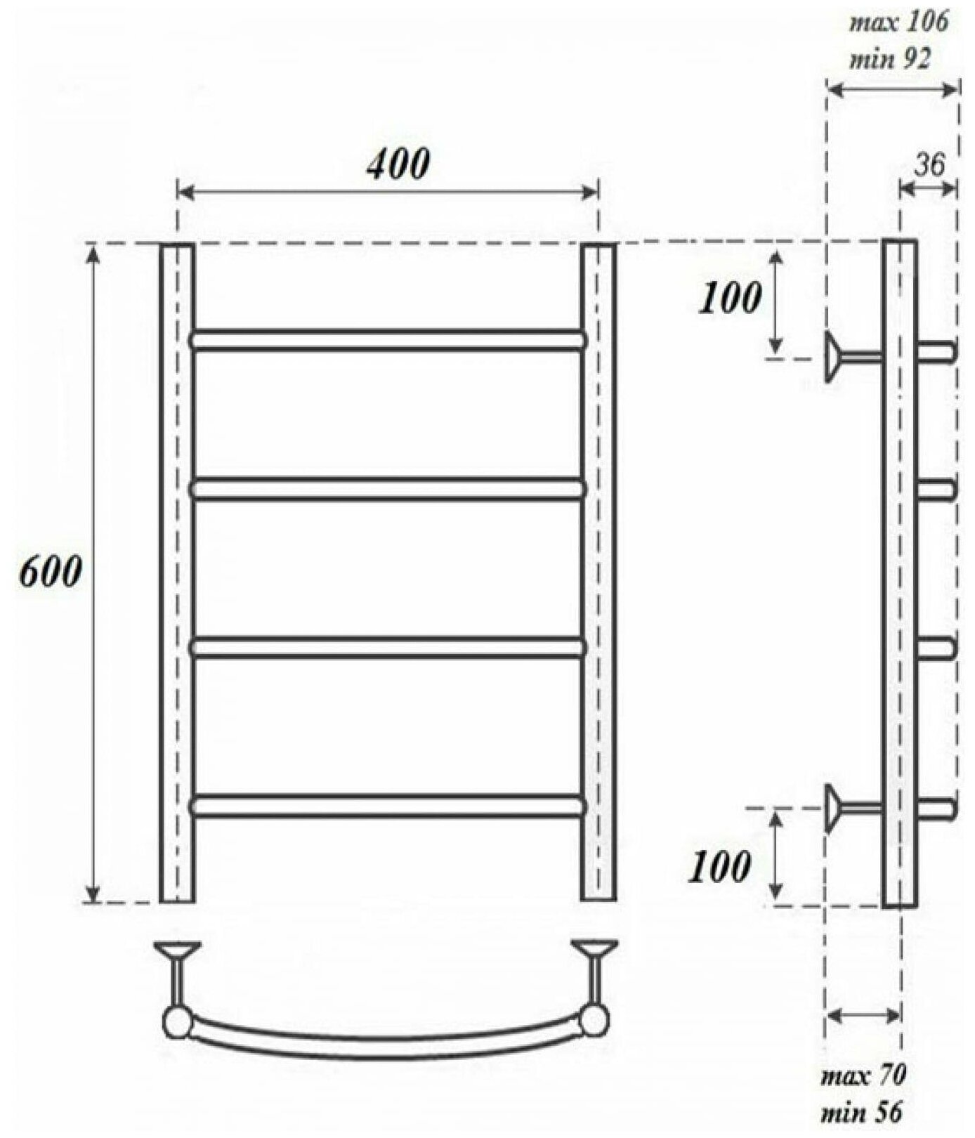Полотенцесушители Полотенцесушитель электрический Point Pn04146e П4 400x600 левый/правый хром .