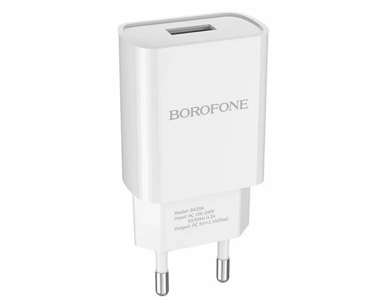 Сетевой адаптер питания Borofone BA20A Sharp White зарядка 2.1А 1 USB-порт + кабель microUSB, белый