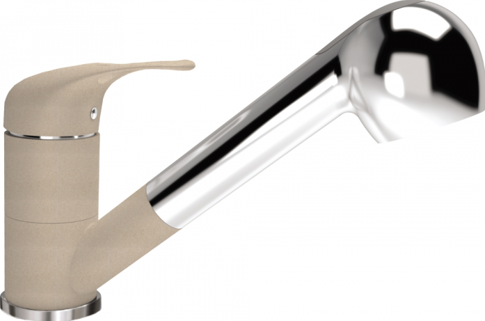 Лучшие цены. Тип смесителя: однорычажный с низким изливомНазначение: для кухни (мойки)Тип монтажа: на мойкуПоворотный излив: даКерамический картридж: 40 ммПодводка: гибкая Выдвижной излив: даПодключение фильтра: нетМатериал: латуньПокрытие: гранитЦвет: песочный. Магазины в вашем городе.
