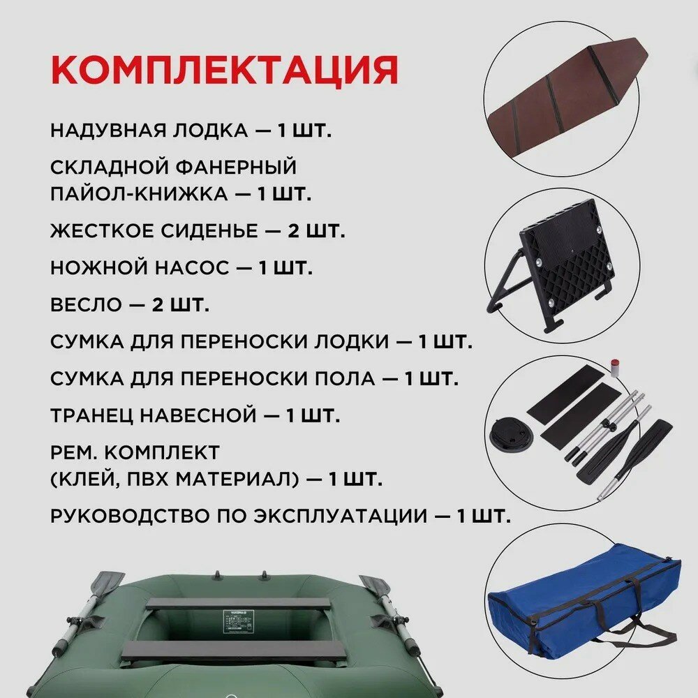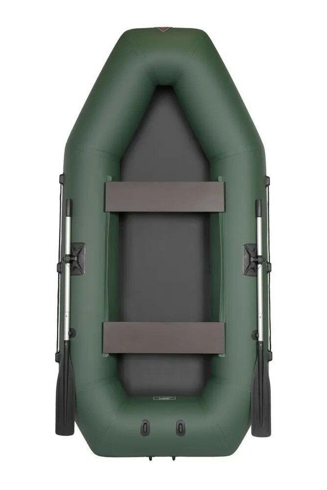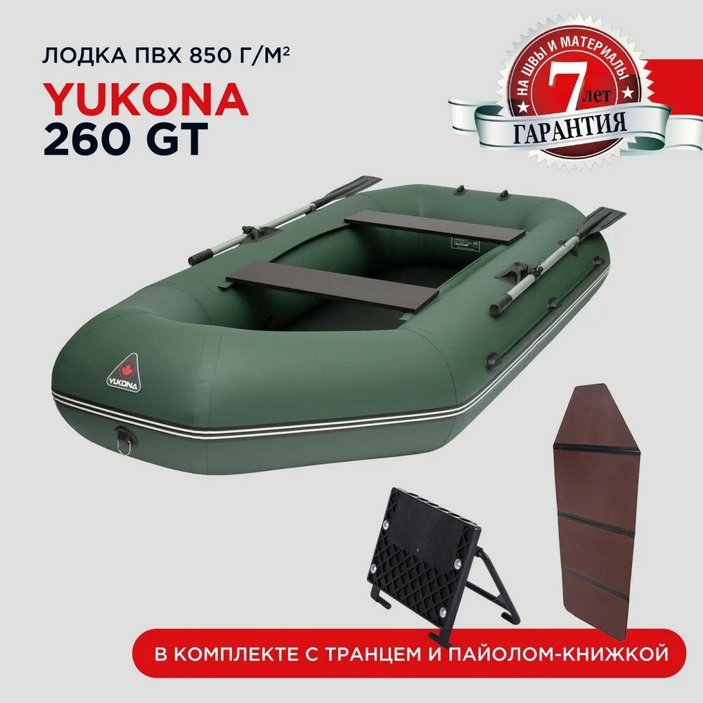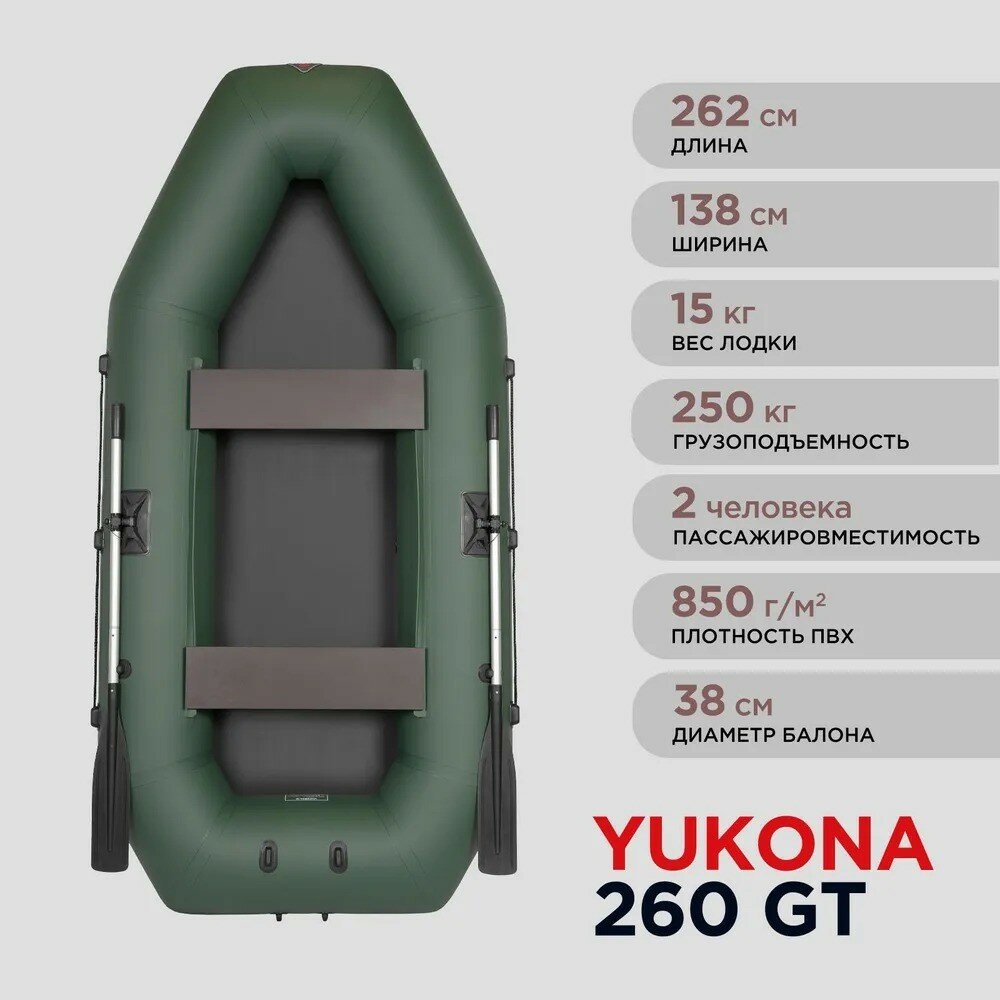 Надувные лодки Надувная гребная лодка ПВХ YUKONA 260 GT под мотор со складным фанерным пайолом, зеленая