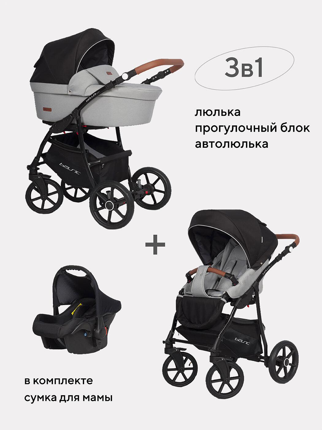Коляски Коляска универсальная Riko Basic Bella Lux 3 в 1 02 серый