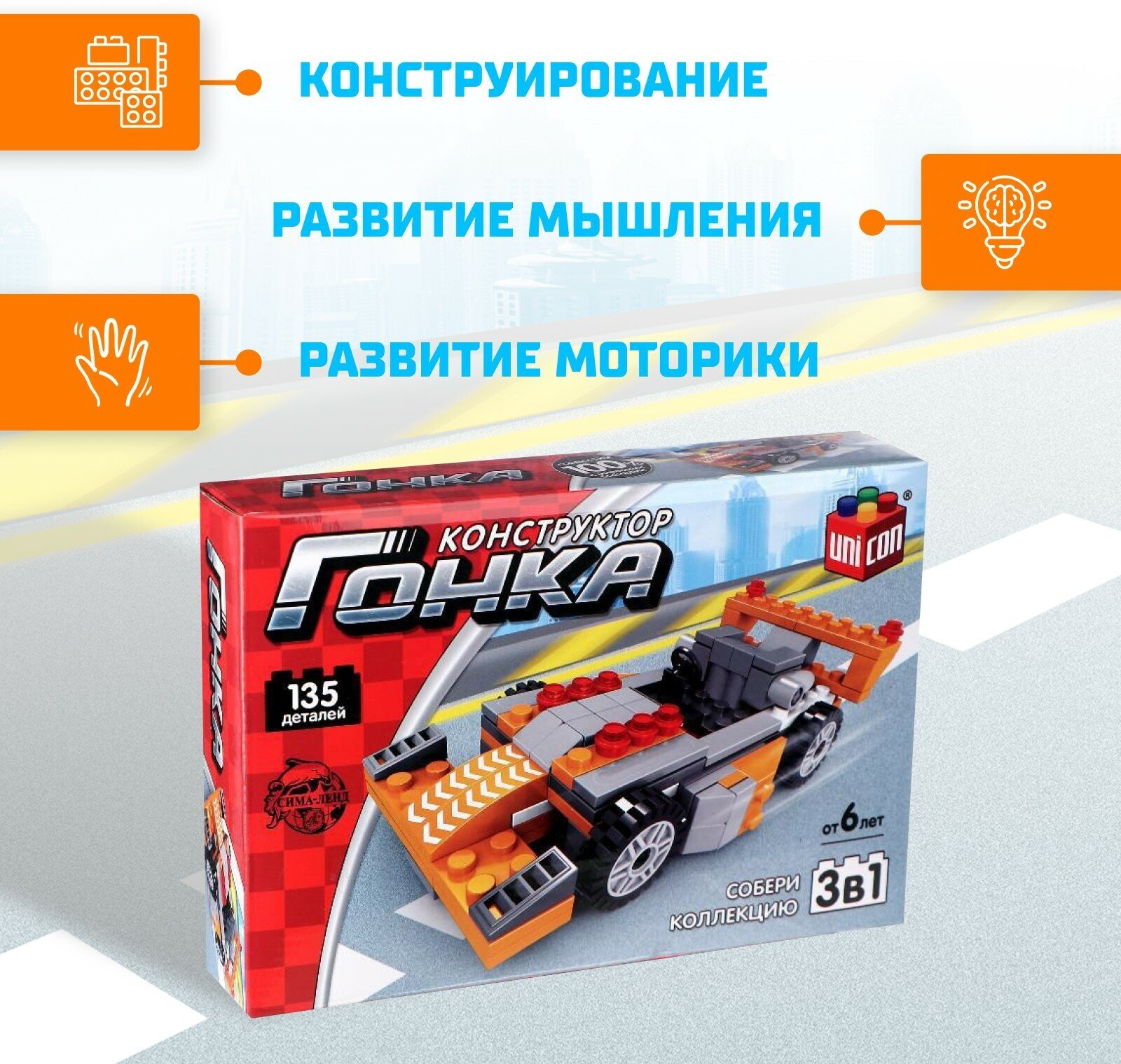 UNICON Конструктор Гонка "Спорткар", 3 в 1, 135 деталей, SL-04517 5164178