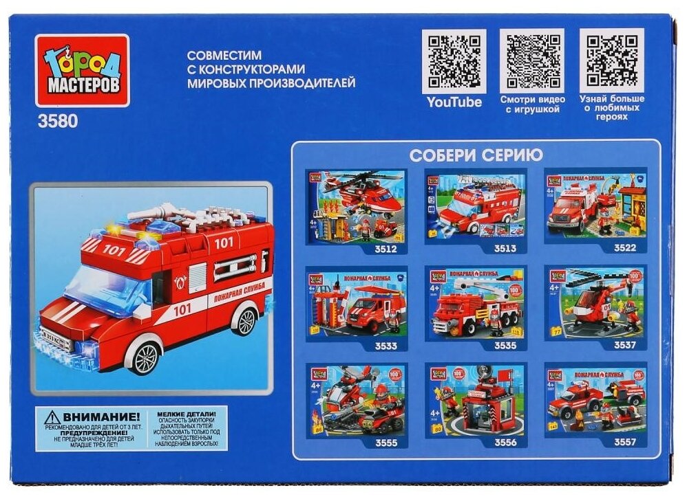 Конструктор Конструктор "пожарная машина" (свет, звук, инерция), 70дет. в кор. Город мастеров в кор.2*48шт 3580-