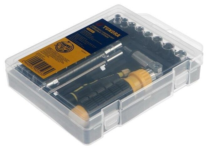 Тундра Отвертки с набором бит и торцевых головок тундра, в кейсе, 5/32", 1/4" 62 предмета