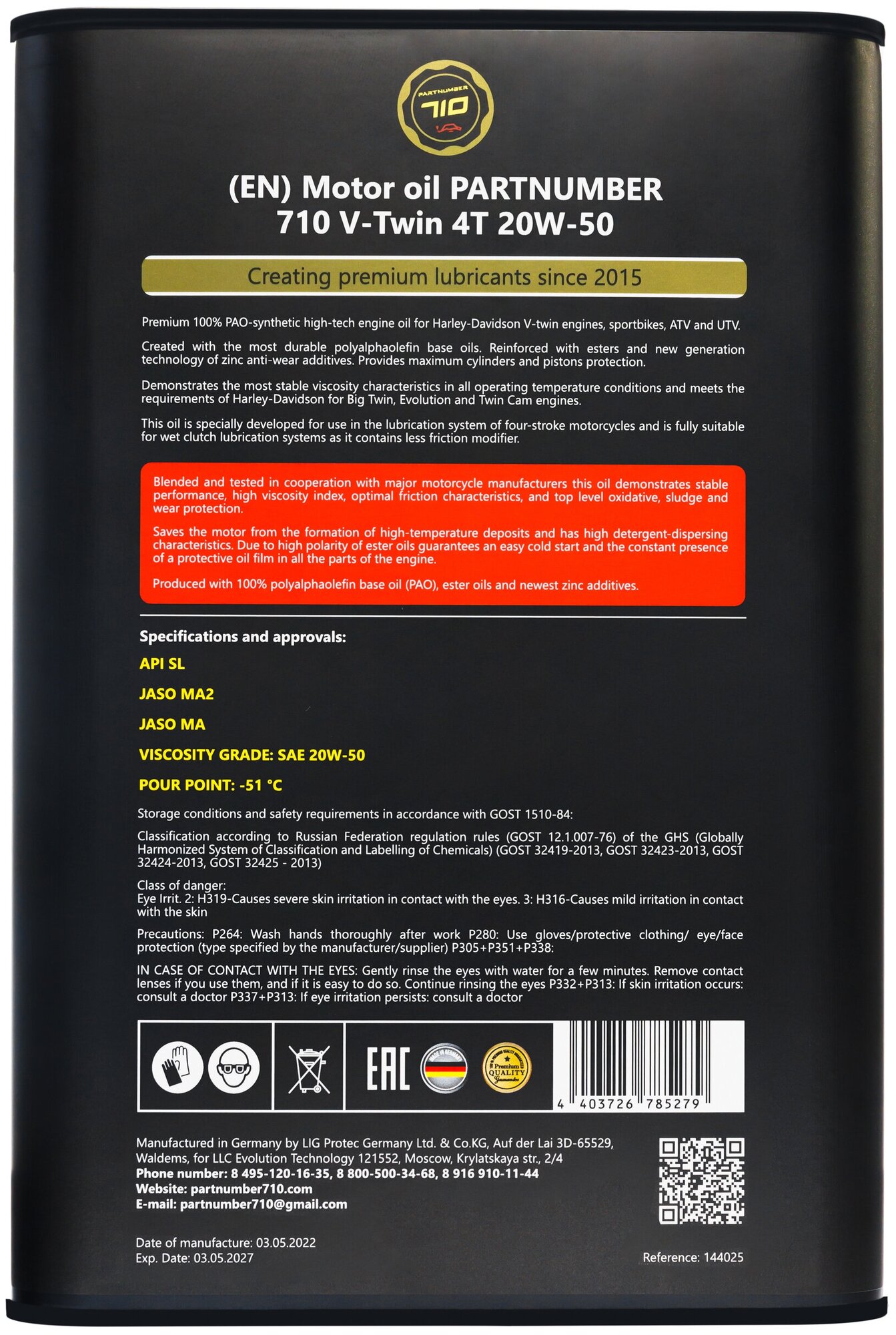 Моторные масла Масло моторное PARTNUMBER 710 V-Twin 4T 20W-50 4 литра