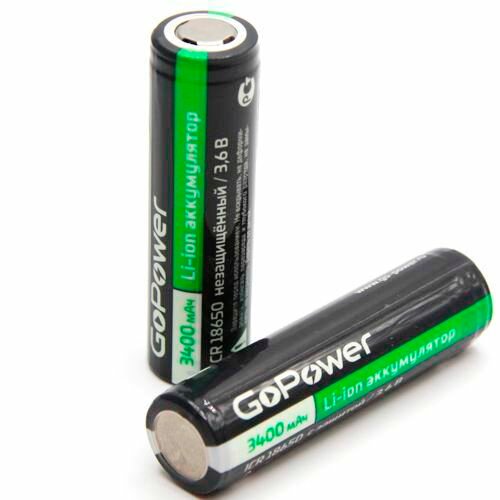 Аккумуляторы и батарейки Аккумулятор Li-ion 18650 GoPower (Panasonic NCR18650B) 3.6В 3400мАч без защиты, в упаковке 1 шт.