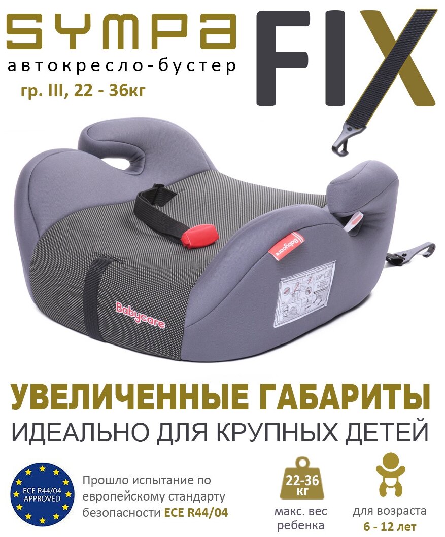 Лучшие цены. Бустер для детей SympaFix это компактное и мобильное автокресло с увеличенными мягкостью и размерами сиденья для коротких и дальних поездок. Его окутывающая форма обеспечивает дополнительную боковую и заднюю защиту. Возраст ребенка от 3 до 12 лет, Вес ребенка от 15 до 36 кг, Бустер надежно крепится в Вашем автомобиле к креплению изофикс. Если в Вашем автомобиле нет крепления ISOFIX, автокресло можно использовать как обычный бустер. Магазины в вашем городе.