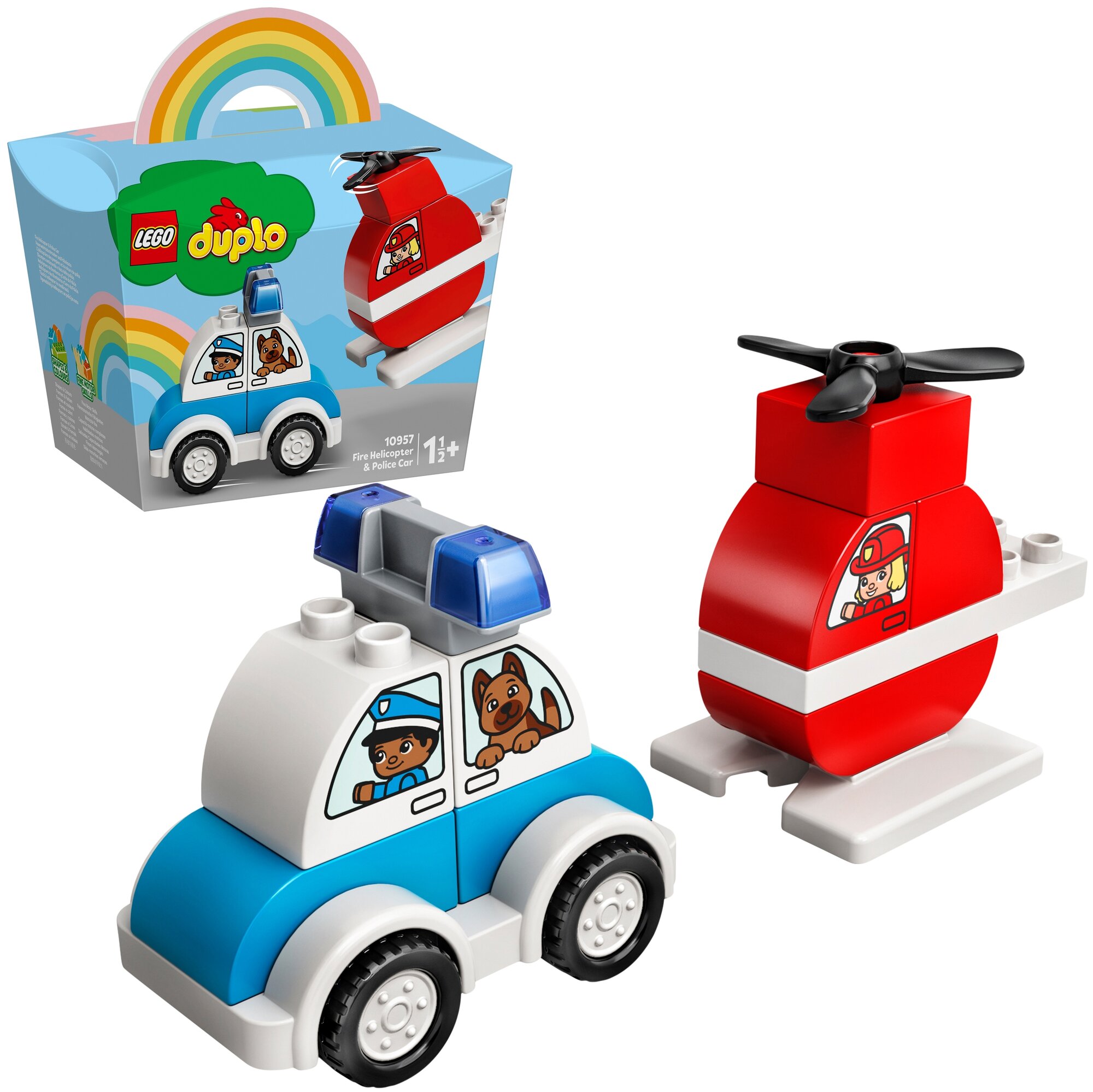 Лучшие цены. Набор «Мой первый пожарный вертолет и полицейский автомобиль» LEGO® DUPLO® (10957) — это развивающая игрушка c красочными деталями и забавными функциями. Игрушечная спасательная машина. Малыши развивают ценные навыки, играя с этой полицейской машиной и пожарным вертолетом. Простые задачи по сборке развивают мелкую моторику и учат распознавать формы и цвета. Увлекательные спасательные операции вдохновляют на ролевую игру и укрепляют социально-эмоциональные навыки. Магазины в вашем городе.