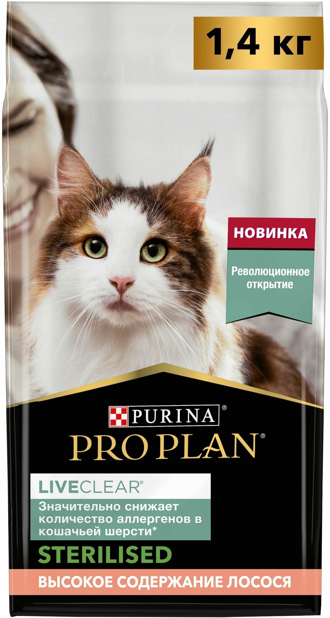 Pro Plan LiveClear сухой корм для стерилизованных кошек, снижающий количество аллергенов в шерсти, с лососем - 1,4 кг