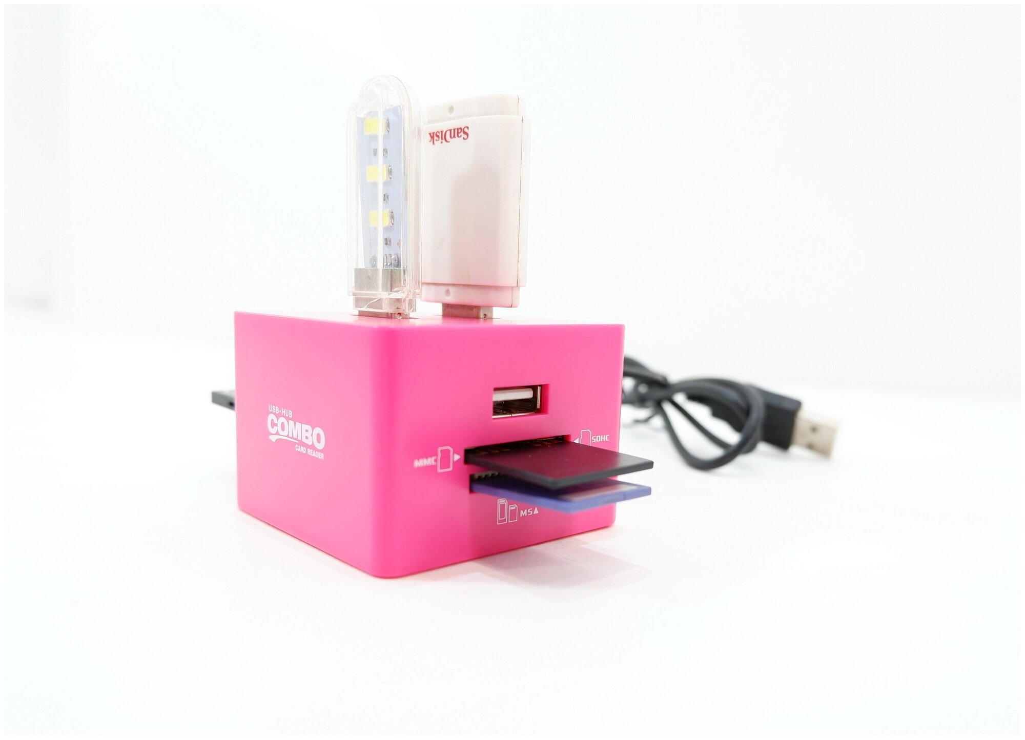 Картридеры и USB-хабы Универсальный USB-хаб + Card Reader COMBO розовый