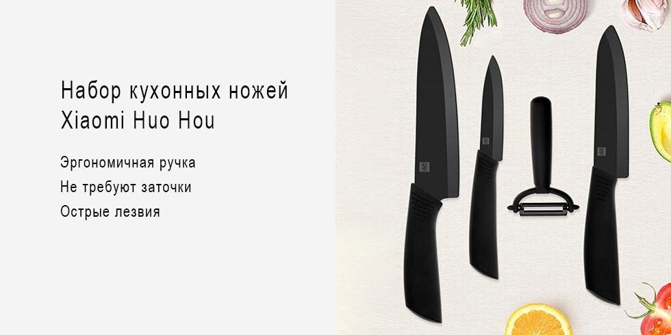 Набор Xiaomi Huo Hou Nano ceramic, 3 ножа и овощечистка